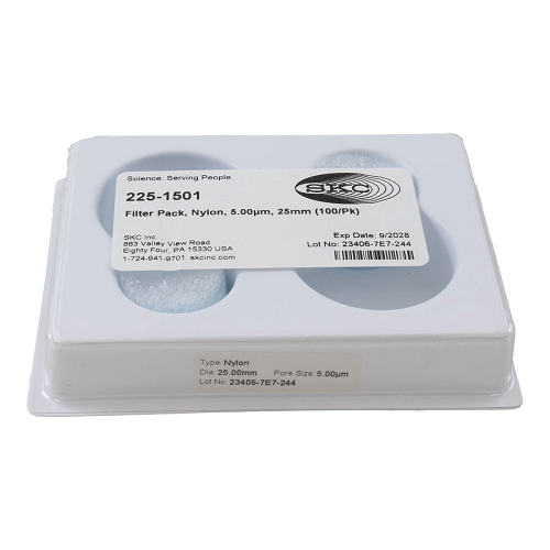 | 25 | 5.0 | Nylon filter with polypropylene support, preloaded in a 3-piece black conductive cassette | 50 | 225-1504 |